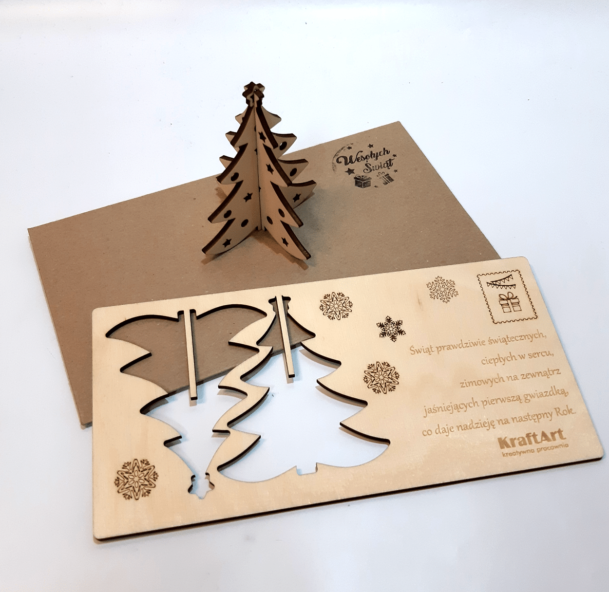 🎄 Drewniana kartka świąteczna 3D – choinka do składania
