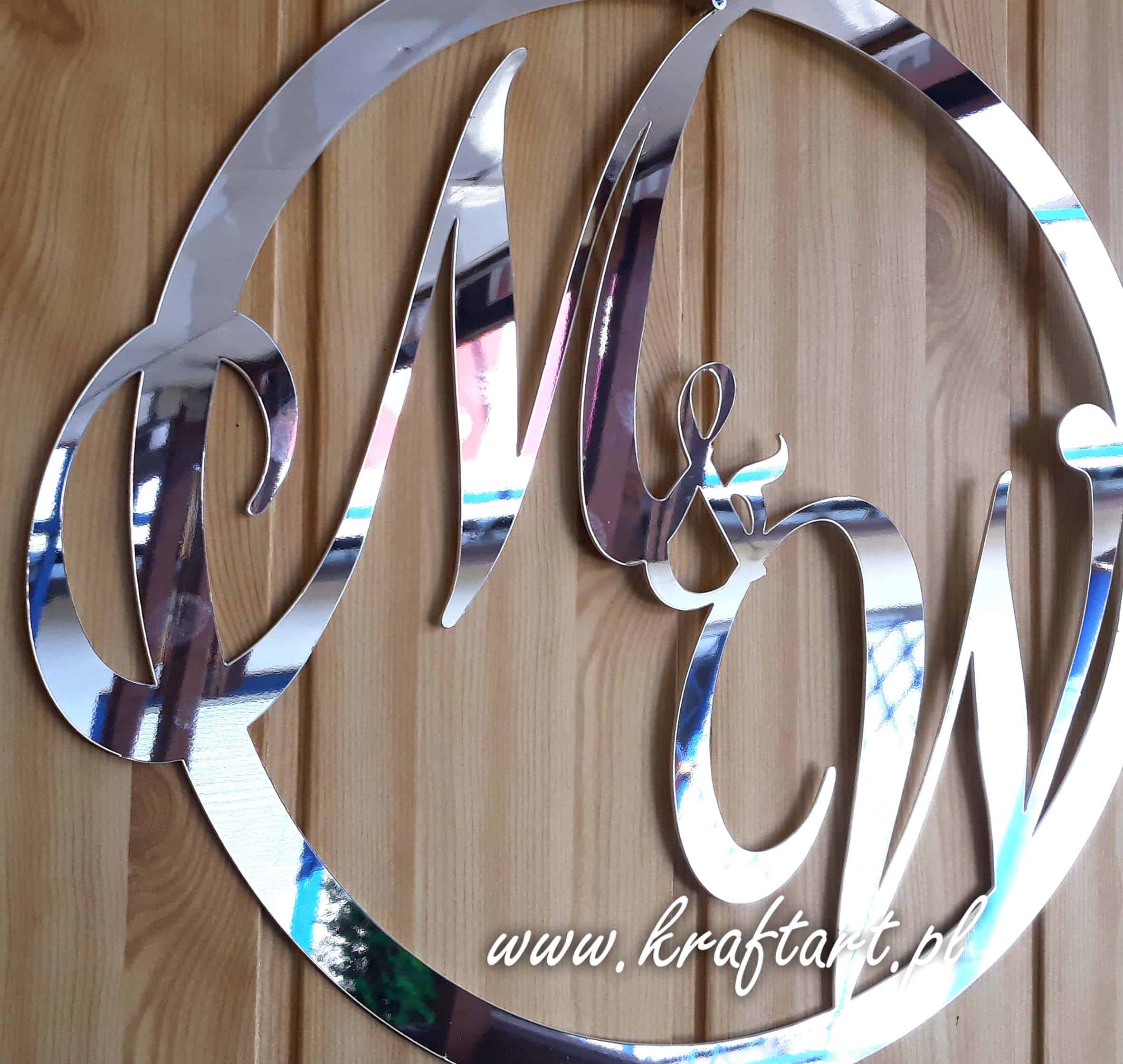 Lustrzane koło z inicjałami – elegancka dekoracja ślubna i pamiątka