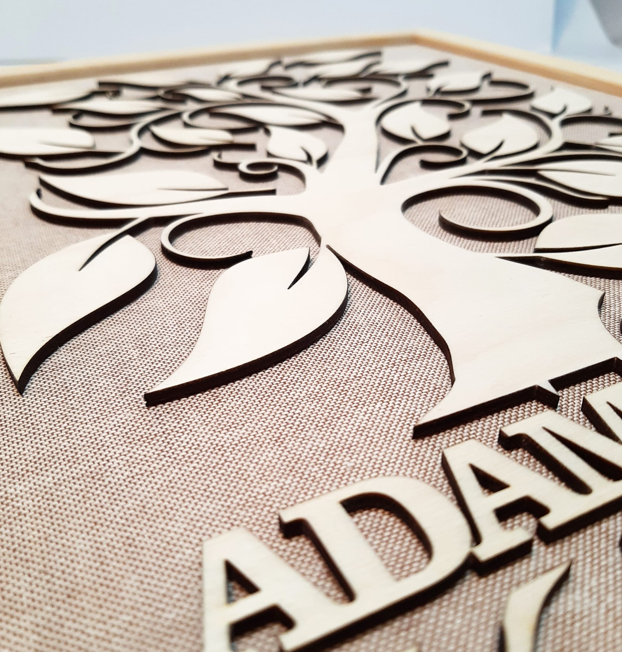 Co ważne, trójwymiarowy efekt: drzewo wycięte warstwowo z wysokiej jakości sklejki
